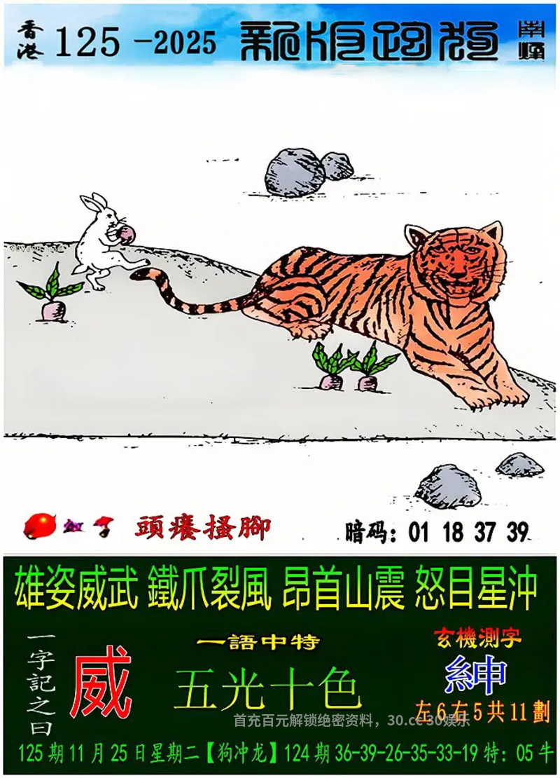 127期:横批字/禁合/第一手/智力金/特一玄/五行生肖/一份杀肖料